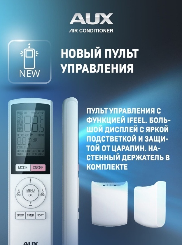 ● Новый пульт управления с функцией IFeel. Дисплей был увеличен на 67%, и оснащен специальным покрытием, которое защищает от механических повреждений. Температурный датчик, встроен в пульт ДУ. Блок автоматически выбирает режим работы, чтобы достичь максимально комфортной температуры в той части комнаты, где находится человек с пультом.