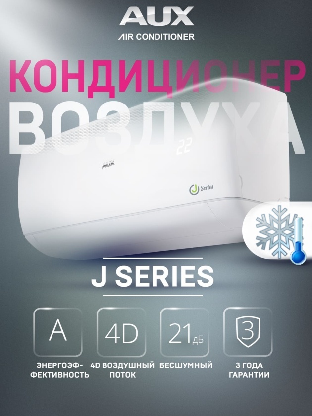 Модельный ряд кондиционеров AUX J-series состоит из шести сплит-систем мощностью от 2,1 до 10,2 кВт.: