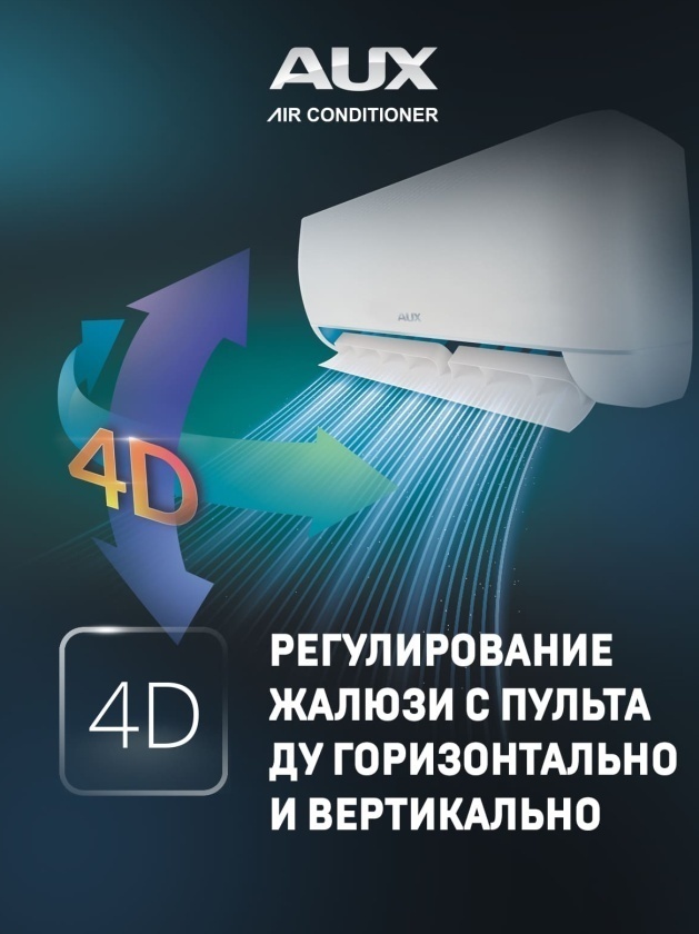 ● 4D обдув. Благодаря электроприводу вертикальных и горизонтальной жалюзи возможно управлять воздушным потоков в 4-х направлениях с пульта ДУ