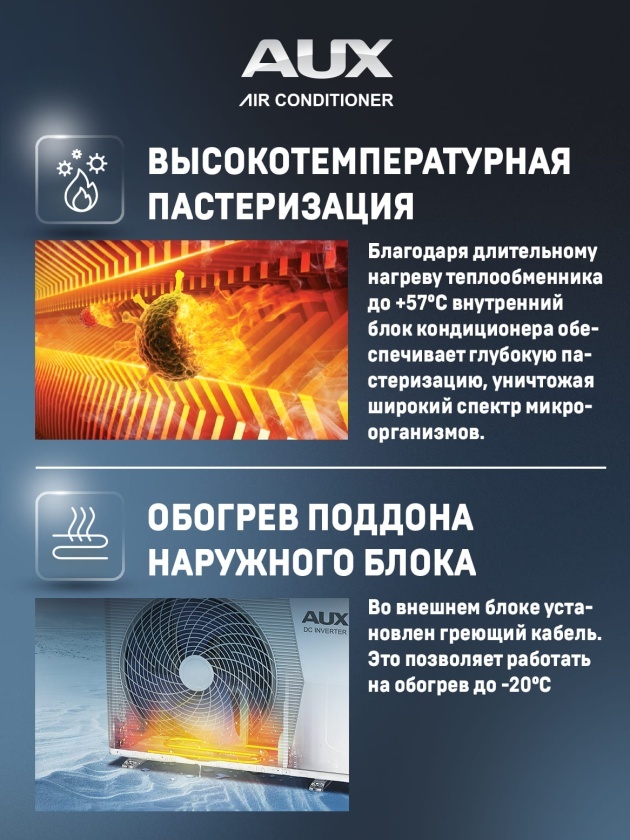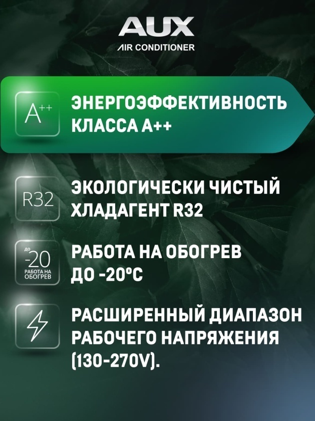 Флагман без компромиссов. Матовый корпус – гармония в совершенстве. Абсолютно заслуженный лидер даст фору любому японцу по своей функциональности, надежности и производительности. Флагман бытовой линейки кондиционеров AUX от немецкой дизайн студии имеет матовую поверхность, модный тренд в современном интерьере. Поглощая свет, такая поверхность не бликует, то есть не является дополнительным световым раздражителем, что создаёт комфортную и уютную обстановку. Содержит множество передовых технологий в климатической технике. Инновационная система самоочистки «Self-cleaning» в отличие от аналогичных решений, обеспечивает комплексную очистку как внутреннего, так и наружного блока, новая инверторная технология «Progressive Inverter» позволяющая кондиционеру при работе на минимальных оборотах потреблять всего 45 Ватт - это меньше, чем обычная электрическая лампочка.
