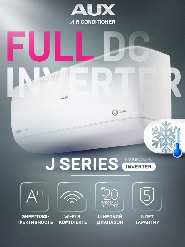 Модельный ряд кондиционеров AUX J-серия Full DC Inverter Wi-fi состоит из четырёх сплит-систем мощностью от 2,7 до 7,2 кВт.: