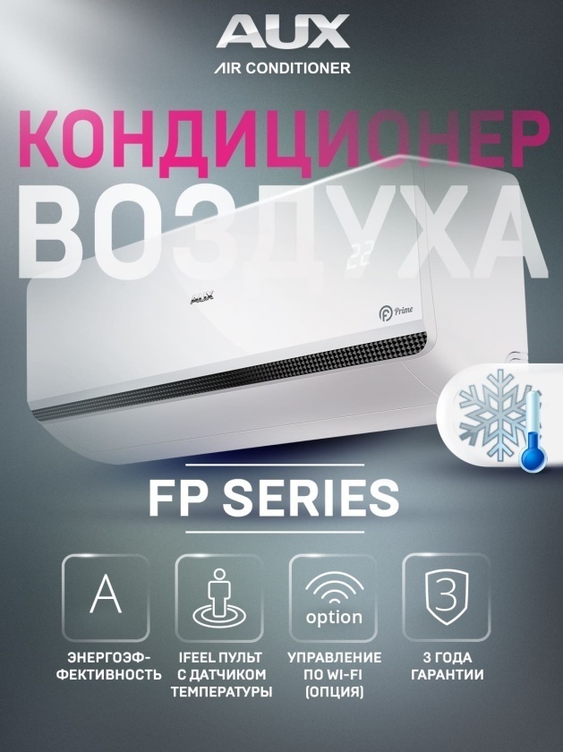 Модельный ряд кондиционеров AUX серия FP Prime состоит из шести сплит-систем мощностью от 2,1 до 9,7 кВт.: