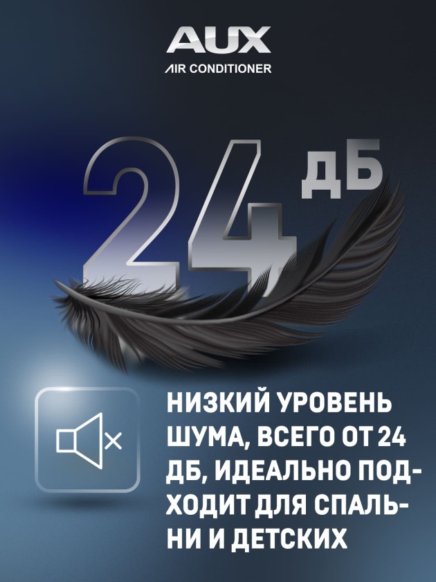 ● Мотор вентилятора с пониженным уровнем шума, обеспечивает работу блока от 24дБ