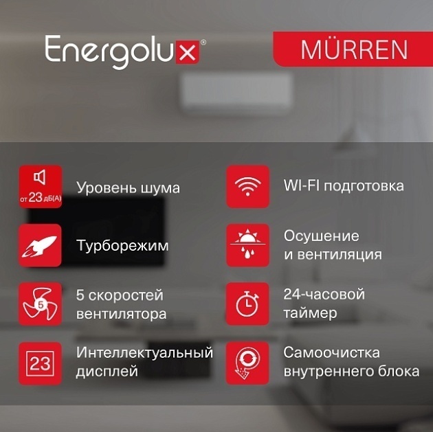 Модельный ряд кондиционеров ENERGOLUX серия MÜRREN White состоит из пяти сплит-систем мощностью от 2,20 до 7,33 кВт.: