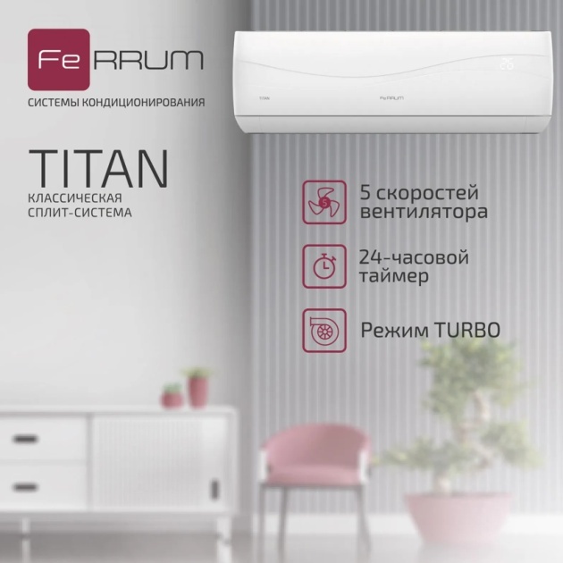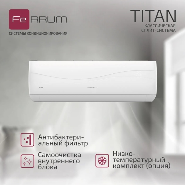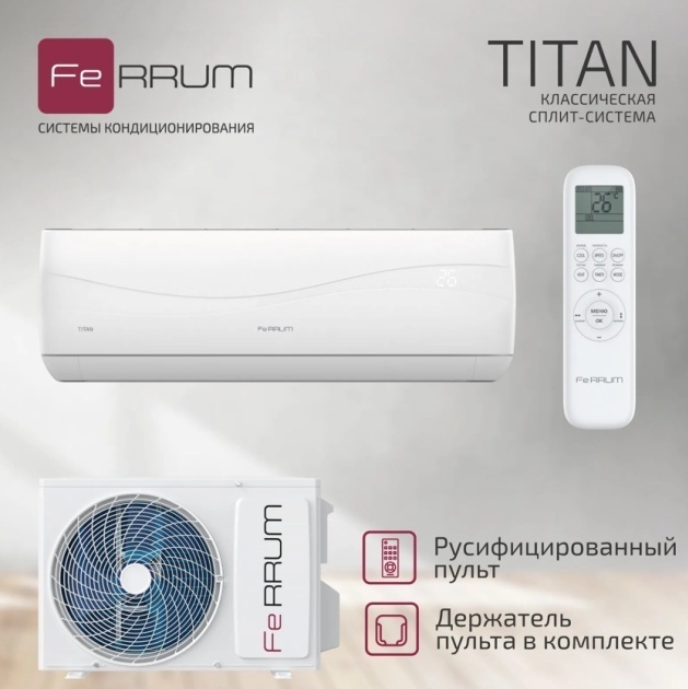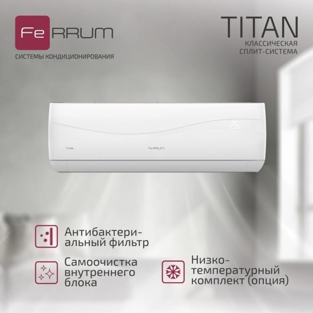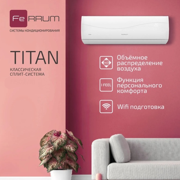 ЖЕЛЕЗНЫЕ ПРАВИЛА КОМФОРТА. Внутренние блоки новой классической сплит-системы TITAN выполнены в сдержанном европейском стиле. На встроенном интеллектуальном дисплее отображается комнатная температура и режим работы кондиционера. Объемное воздухораспределение, фильтрация воздуха и многие другие функции гарантируют пользователям высокий уровень комфорта.