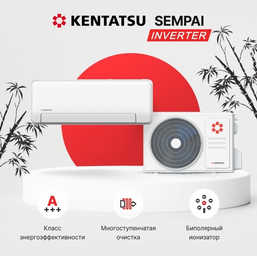 Кондиционеры KENTATSU серия SEMPAI Full DC Inverter — Современные технологии энергоэффективности, комфорта и заботы об окружающей среде. Специальная технология Easy Climate Pro существенно упрощает процесс монтажа и обслуживания кондиционера. Кондиционер выполнен в технологичном дизайне, имеет низкий уровень шума и интеллектуальное управление. KENTATSU SEMPAI полностью соответствует требованиям регламента ERP.